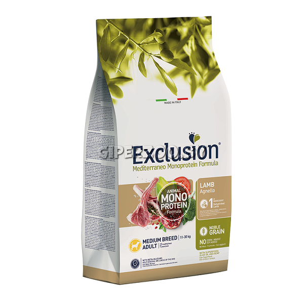 EXCLUSION Monoprotein Lamb Noble Grain с ягненком, 3 кг - полнорационный сбалансированный сухой корм на основе высококачественного зерна и дегидрированного монопротеина животного происхождения.