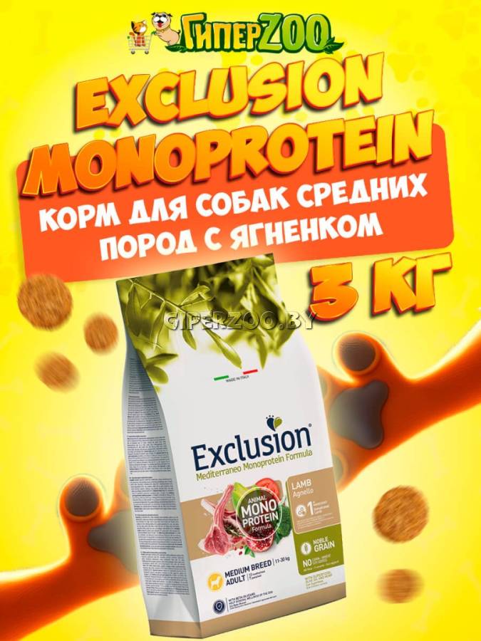 Сухой корм для собак EXCLUSION Monoprotein Medium (ягненок), 3 кг – полнорационный сбалансированный корм на основе высококачественного зерна и дегидрированного монопротеина животного происхождения.