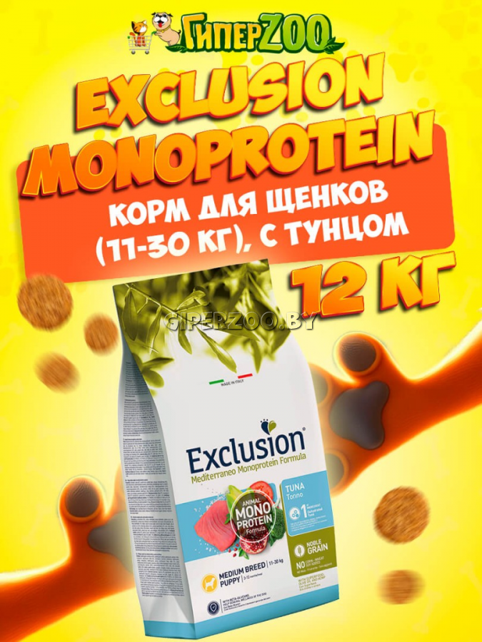 EXCLUSION Monoprotein Puppy Medium (тунец), 12 кг
