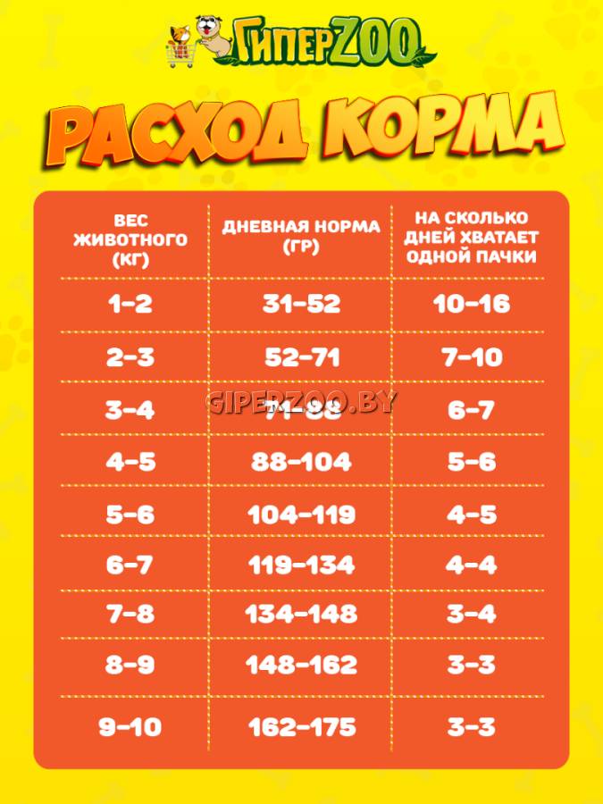 Aнaлитический состав: сырой белок – 24%, необработанные масла и жиры – 13%, сырая зола – 7%, сырая клетчатка – 2,5%, кальций – 1,2%, фосфор – 1%, калий – 0,5%, натрий – 0,4%, омега-3 жирные кислоты – 0,35%, омега-6 жирные кислоты – 2,65%.