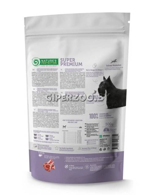 Состав: мука из мяса ягненка (18%), кукуруза, кукурузный глютен, рис, жир животного происхождения, ячмень, семя льнa, жом сахарной свеклы, рыбная мука, динамически микронизированный клиноптилолит (1%), экстракт цикория, маннан-олигосахариды (МОС), экстракт юкки, мука из бархатцев. Сбалансированный гипоаллергенный корм для собак с чувствительным пищеварением. Система натуральных антиоксидантов и уникальный запатентованный минерал MicroZeoGen укрепляет имунную систему, борется с инфекциями и улучшает подвижность суставов.