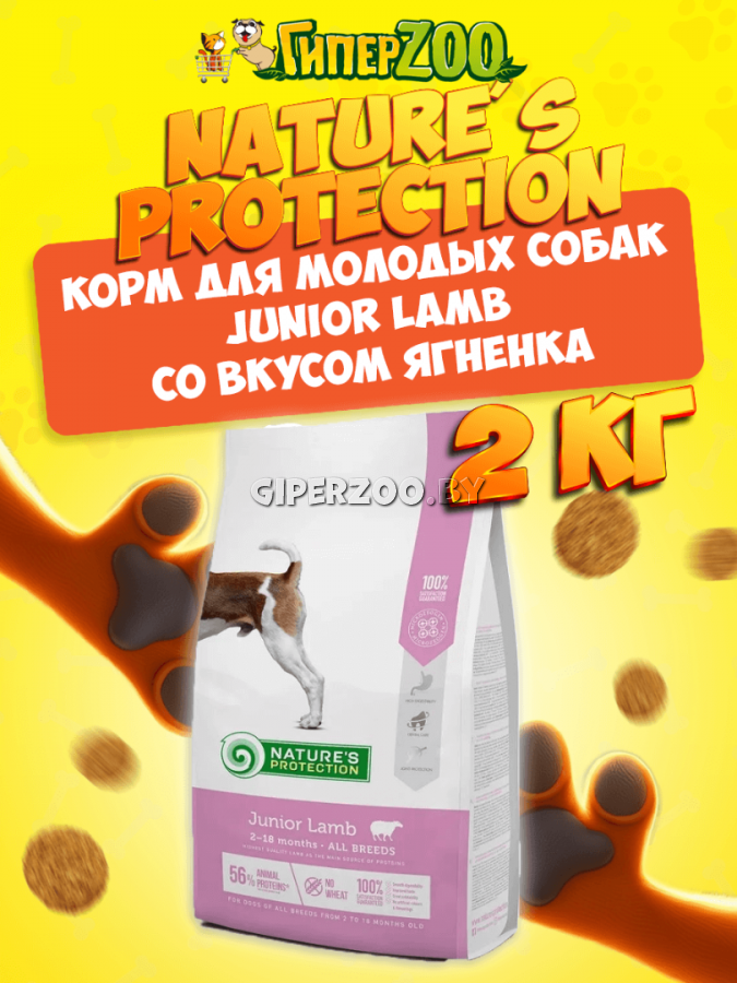 Nature's Protection Junior Lamb — это сухой корм, разработанный для растущих молодых собак (2-18 месяцев).