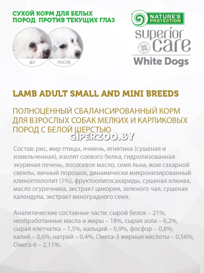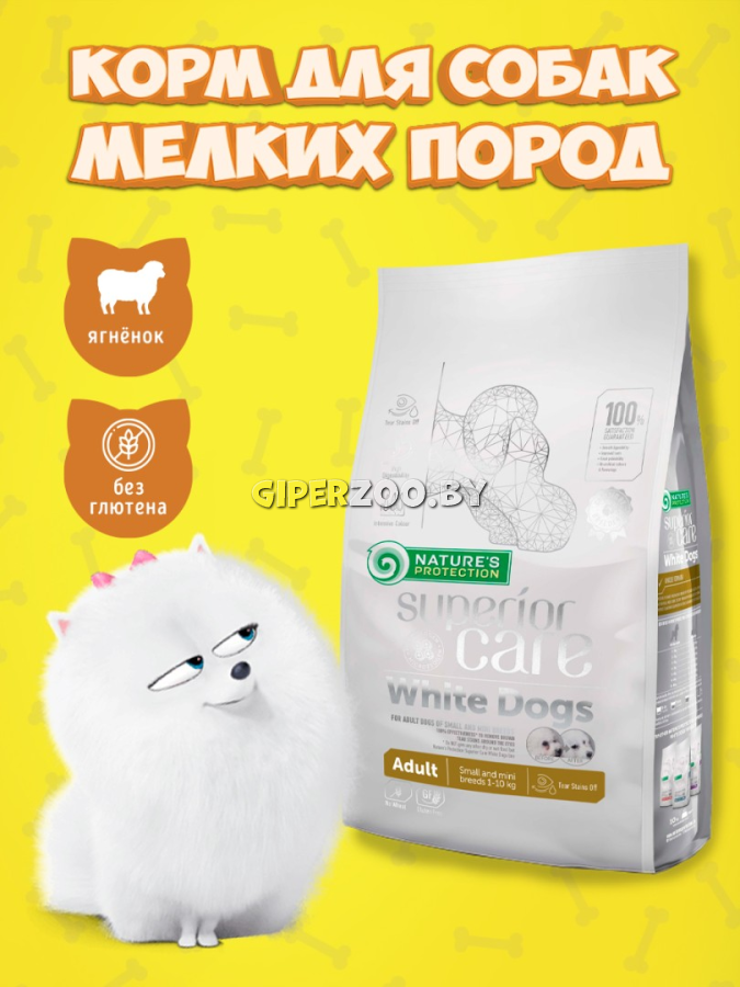 Сухой корм для собак Nature’s Protection Superior Care White Dogs Small and Mini Breeds (ягненок), 10 кг - корм для белых собак мелких и карликовых пород 1-10 кг