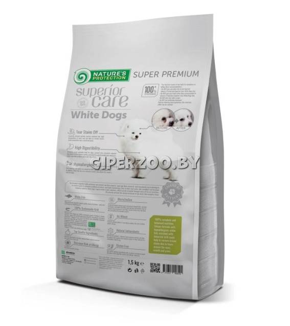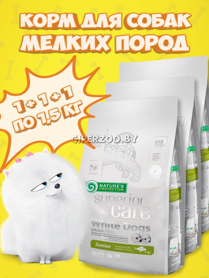 Набор кормов для собак Nature's Protection Superior Care White Dogs Junior Grain Free White Fish (Натур Протекшн Джуниор для белых собак с рыбой), 1,5 кг*3 шт - полноценный беззерновой корм для растущих собак малых пород с белой рыбой (масса тела взрослого 1-10 кг)