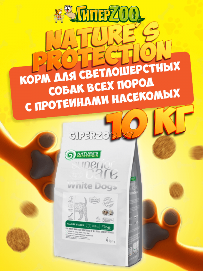 Nature's Protection White Dog Grain Free with Insect Adult Small Breed – корм cупер-премиум класса с протеинами насекомых, разработанный специально для взрослых собак малых и декоративных пород с белым окрасом шерсти.