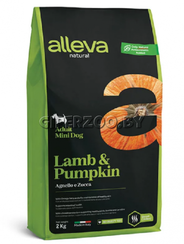 Alleva Natural Adult Mini (ягненок и тыква)- полнорационный сухой корм для взрослых собак мелких пород.