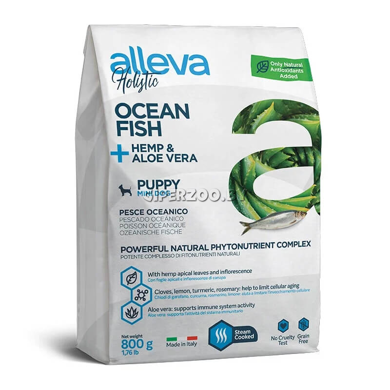 Alleva Holistic для щенков мелких пород (океаническая рыба) - беззерновой полнорационный сбалансированный сухой корм для щенков и юниоров, обеспечивающий полный комплекс необходимых веществ для здоровья и развития вашего питомца.