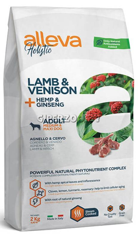 Alleva Holistic Adult Medium & Maxi (Ягненок, оленина) - беззерновой полнорационный сбалансированный сухой корм для собак, обеспечивающий полный комплекс необходимых веществ для здоровья вашего питомца.
