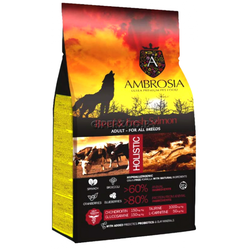 Ambrosia Adult All Breeds (Говядина, лосось), 2 кг - это превосходный беззерновой корм, предлагающий оптимальное питание для собак всех пород.