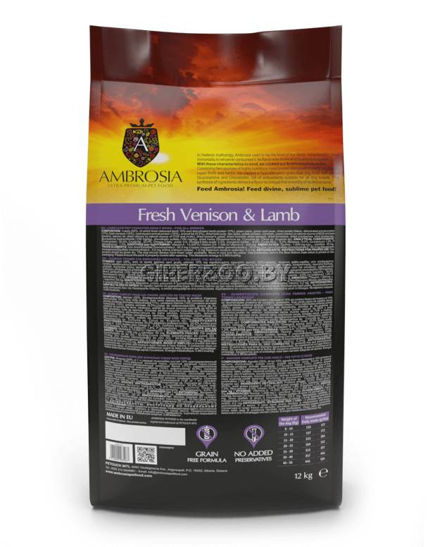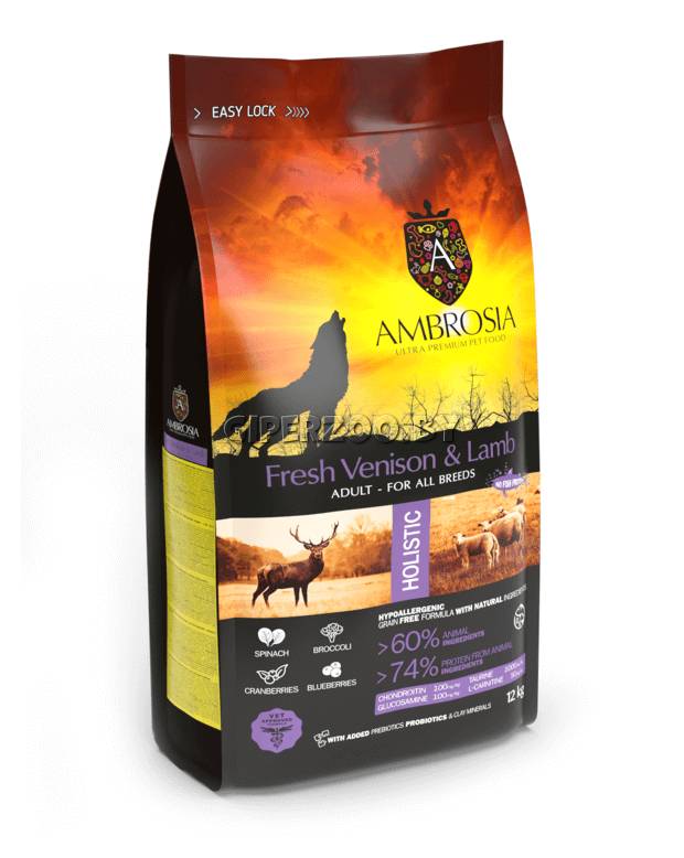 Ambrosia Adult All Breeds (Оленина, ягненок), 2 кг - это превосходный беззерновой корм, предлагающий оптимальное питание для собак всех пород.