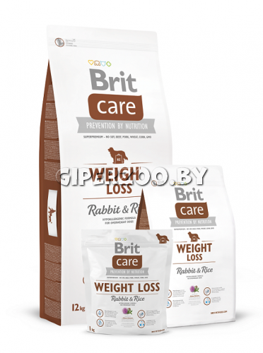 Brit Care Weight Loss Rabbit & Rice - полнорационный гипоаллергенный корм с кроликом и рисом для собак с избыточным весом.