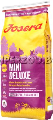Josera MiniDeluxe (ягненок), 15 кг - беззерновой корм, разработан специально для взрослых собак мелких пород, содержит много мяса ягненка, овощи, фрукты и травы, что делает его вкусным и легкоусвояемым.