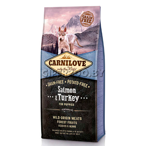 Carnilove Salmon & Turkey For Puppies - полнорационный сбалансированный беззерновой сухой корм для щенков всех пород в возрасте от 1 до 12 месяцев.