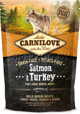 Carnilove Salmon&Turkey for Large Breed Adult (лосось, индейка), 1,5 кг - это полнорационный беззерновой корм для взрослых собак крупных пород (≤ 25 кг).
