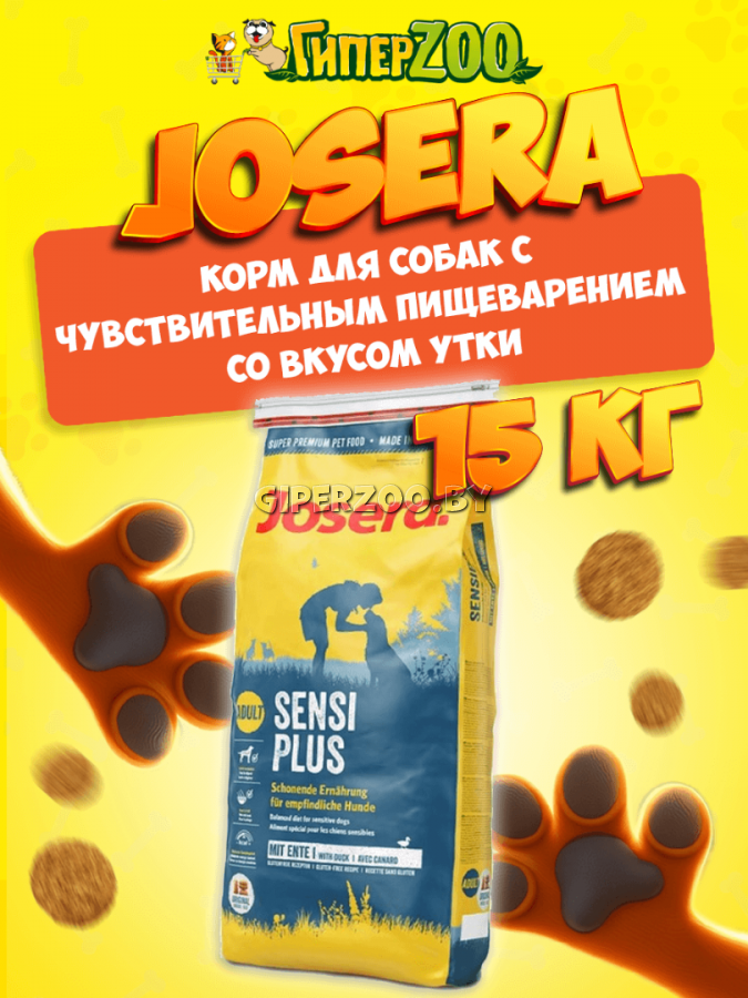Josera SensiPlus (утка), 15 кг - это сбалансированный рацион для собак с чувствительным пищеварением. Он легко усваивается, не перегружает желудок и подходит для чувствительной пищеварительной системы.
