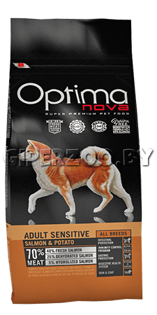 Optima Nova Adult Sensitive (лосось и картофель), 2 кг - полноценный корм для взрослых собак любых пород с чуствительным желудком.