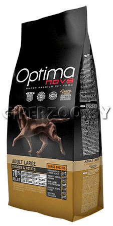 - Благодаря содержанию глюкозамина и хондроитина, Optimanova Adult Large Chicken & Potato специально разработан для предотвращения преждевременного повреждения костей и суставов, к которым склонны крупные породы.