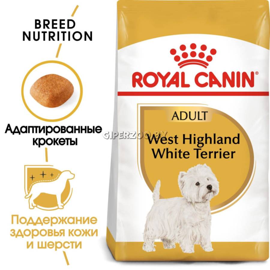 Royal Canin West Highland White Terrier, 1,5 кг - полнорационный корм для взрослых собак породы вест-хайленд-уайт-терьер в возрасте от 10 месяцев.