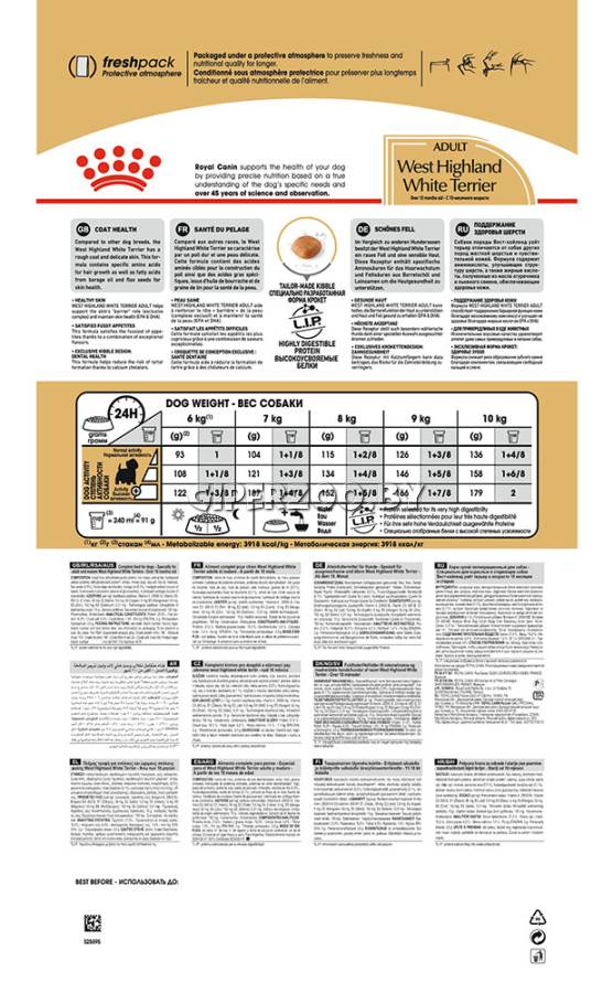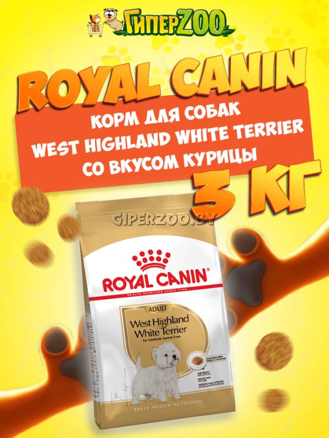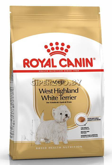 Royal Canin West Highland White Terrier, 3 кг- полнорационный корм для взрослых собак породы вест-хайленд-уайт-терьер в возрасте от 10 месяцев.