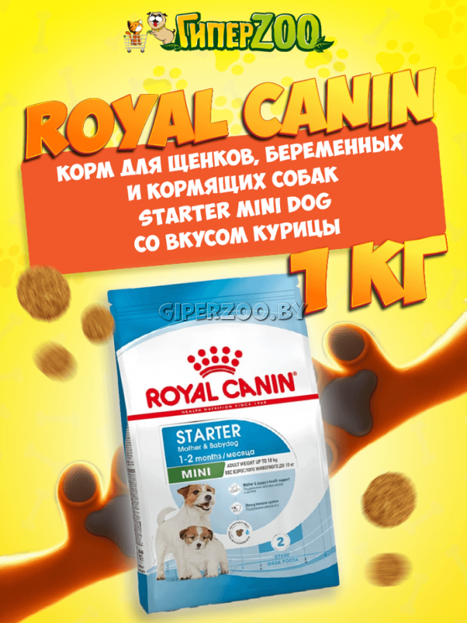 Royal Canin Starter Mini, 1кг - полнорационный сбалансированный сухой корм для сук мелких пород (вес взрослой собаки до 10кг) в конце беременности и в период лактации, а также для щенков до 2 месяцев.