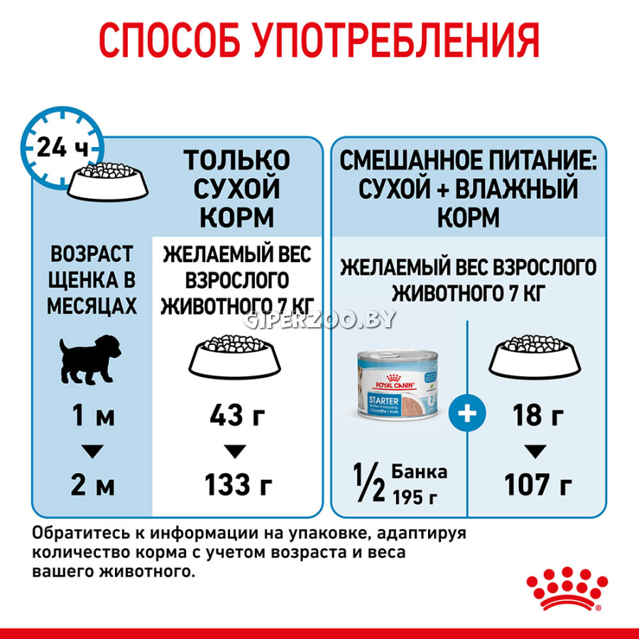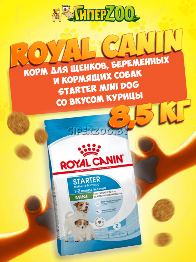 Royal Canin Starter Mini, 8,5кг - полнорационный сбалансированный сухой корм для сук мелких пород (вес взрослой собаки до 10кг) в конце беременности и в период лактации, а также для щенков до 2 месяцев.