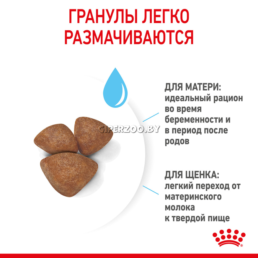 Рацион ROYAL CANIN Mini Starter Mother & Babydog соответствует высоким энергетическим потребностям собаки в конце беременности и в период лактации.