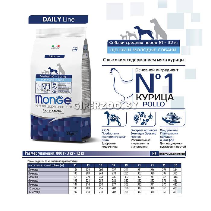 * По сравнению с другими продуктами Monge Superpremium Dog.