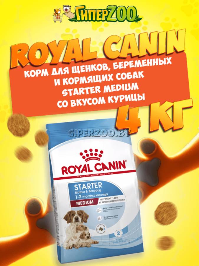Royal Canin Starter Medium, 4 кг - разработан специально для сук в период беременности и лактации и для их потомства(до 2-х месячного возраста).