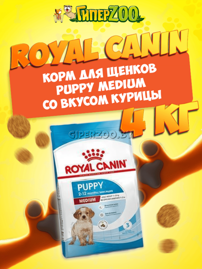 Royal Canin Puppy Medium, 4 кг - разработан для щенков средних пород (вес взрослой собаки от 11 до 25 кг) в возрасте от 2 до 12 месяцев.