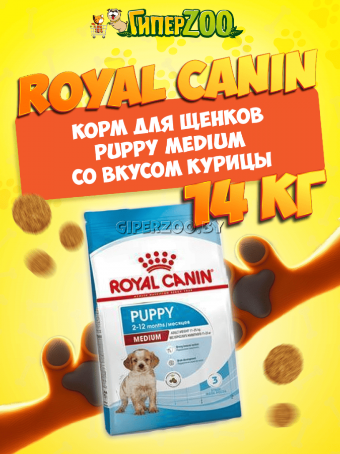 Royal Canin Puppy Medium, 14 кг - разработан для щенков средних пород (вес взрослой собаки от 11 до 25 кг) в возрасте от 2 до 12 месяцев.