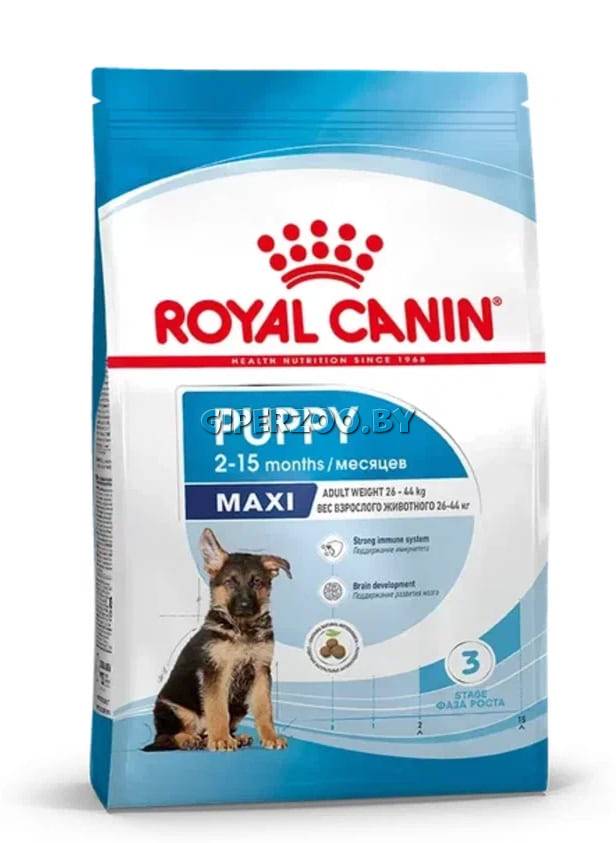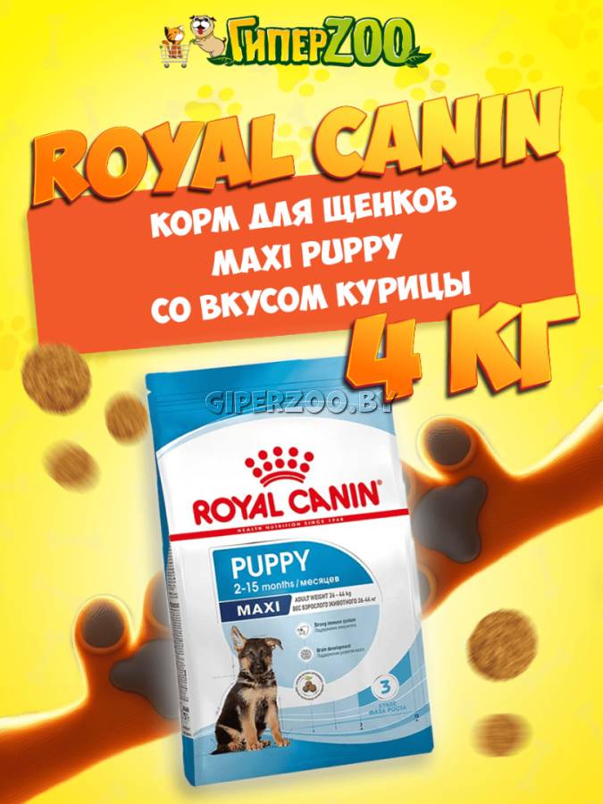 Сухой корм Royal Canin Maxi Puppy 4 кг создан с учетом потребностей щенков крупных пород собак (вес взрослой собаки от 26 до 44 кг) , он подходит щенкам в возрасте от 2 до 15 месяцев.