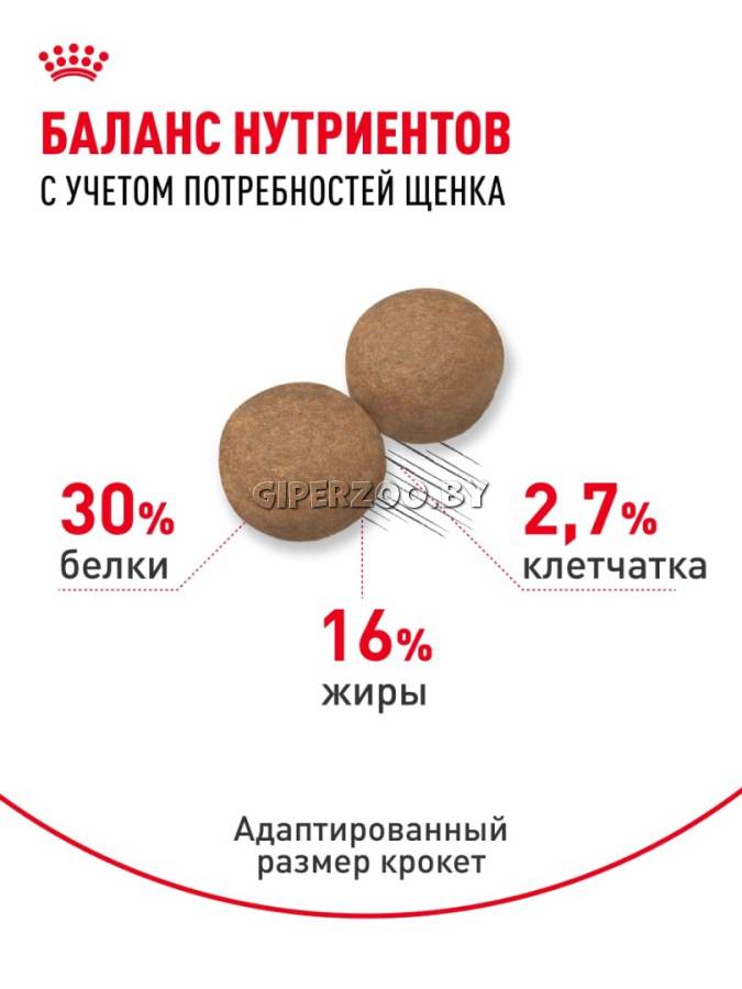 Maxi Puppy содержит запатентованный комплекс антиоксидантов, включающий, в частности, витамин Е и поддерживающий иммунную систему щенка в период ее развития. Комбинация белков L.I.P., известных своей высокой усвояемостью, а также пребиотиков (ФОС) способствует нормальной работе пищеварения. У щенков крупных пород собак период роста длится долго. В это время они нуждаются в адаптированном питании. Royal Canin Maxi Puppy отличается умеренным уровнем калорийности, отвечающим потребностям вашего щенка.