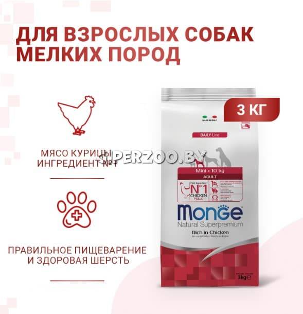 Monge Adult Mini dog (курица и рис), 3 кг - это полноценный сбалансированный рацион для взрослых собак мелких пород с нормальной физической активностью.