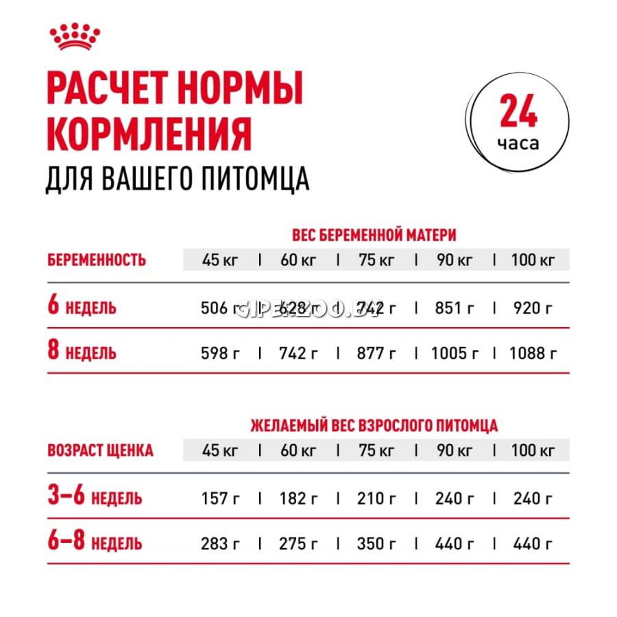 Высокое содержание белков, калорий и минеральных веществ удовлетворяет потребности кормящей матери и щенков.