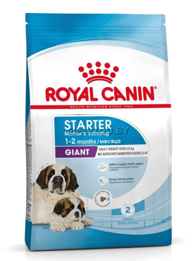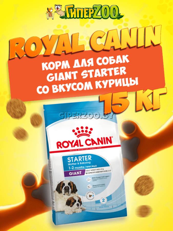Royal Canin Giant Starter, 15 кг - сухой корм для собак в период беременности и лактации, а также для щенков в период отъема от матери и до 2-х месячного возраста. GIANT Starter – полнорационный продукт для собак очень крупных размеров (весом свыше 45 кг).