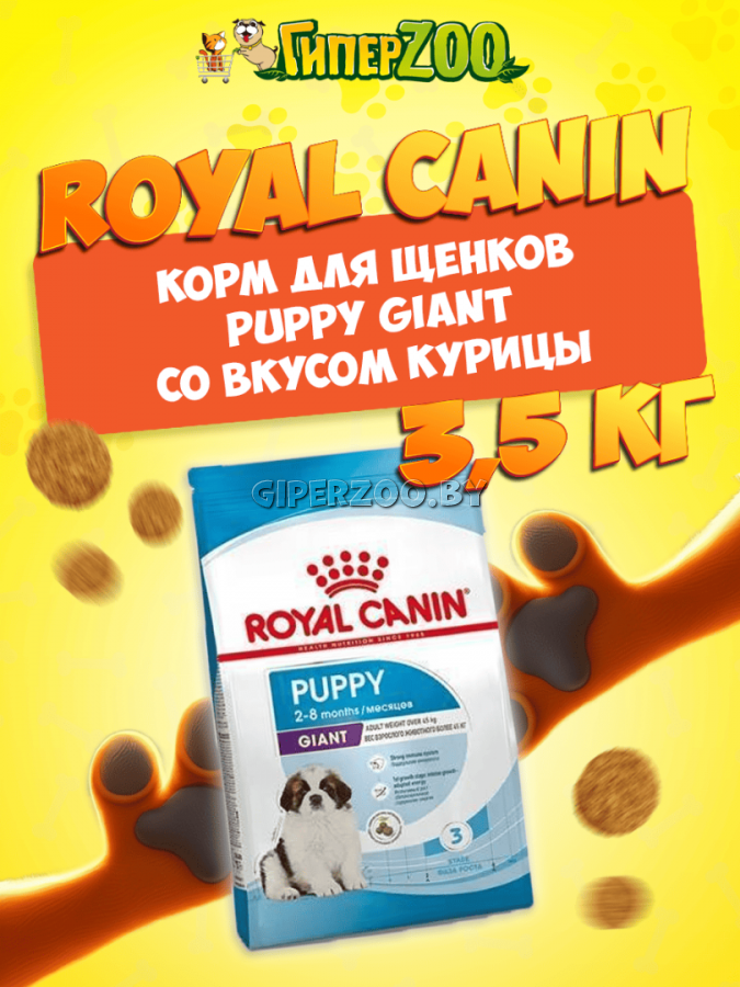 Royal Canin Puppy Giant, 3,5 кг - сухой корм для щенков в возрасте до 8 месяцев. GIANT Puppy - полнорационный продукт для щенков очень крупных размеров (вес взрослой собаки более 45 кг).