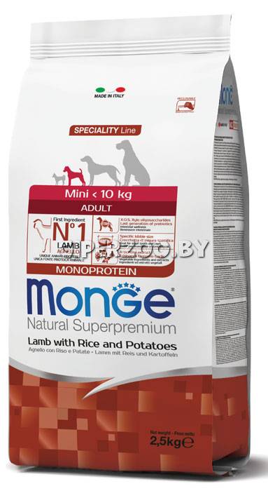 Monge Adult Mini dog (ягненок и рис), 7,5 кг - это полноценный сбалансированный рацион для взрослых собак мелких пород. Оптимален для собак, склонных к аллергическим воспалительным реакциям.