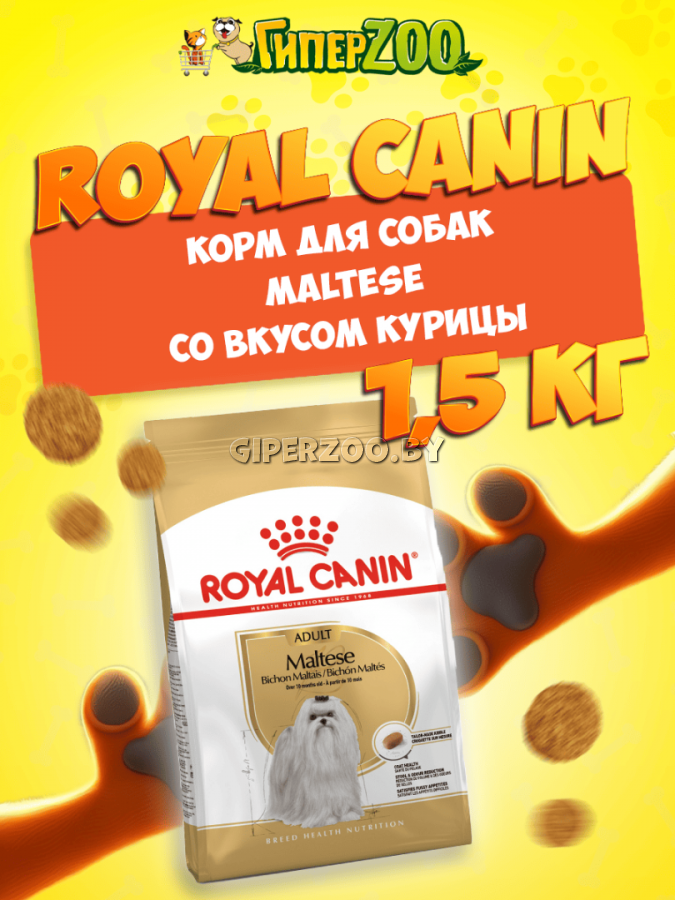 Royal Canin Maltese, 1,5 кг - полнорационный корм для взрослых собак породы мальтийская болонка в возрасте от 10 месяцев. Стимулирует аппетит даже у самых разборчивых собак благодаря отборным натуральным ароматизаторам.