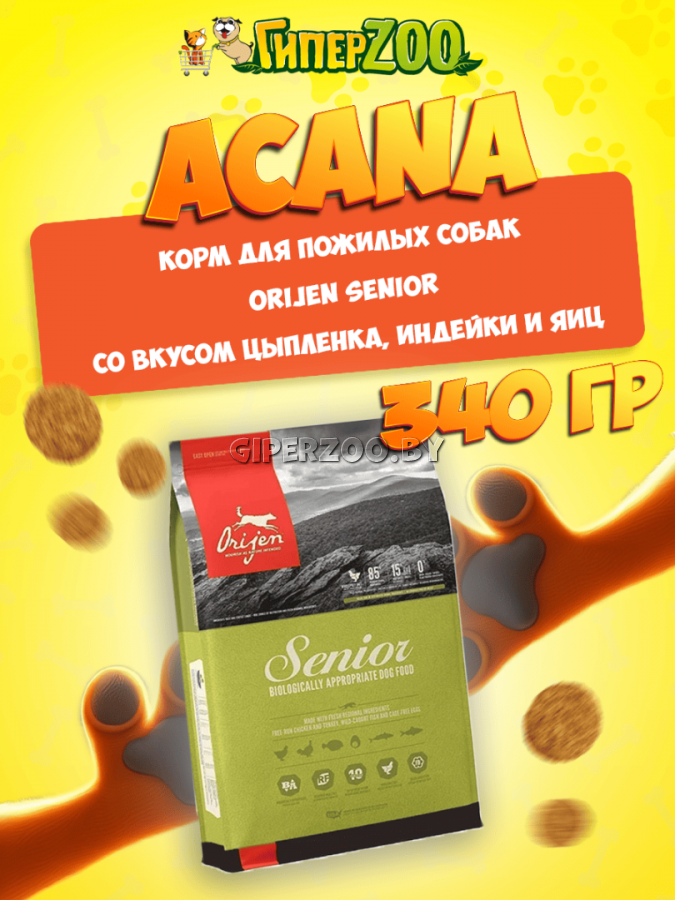 Сухой Корм Acana Orijen Senior (цыпленок, индейка, яйца), 0,34 кг
