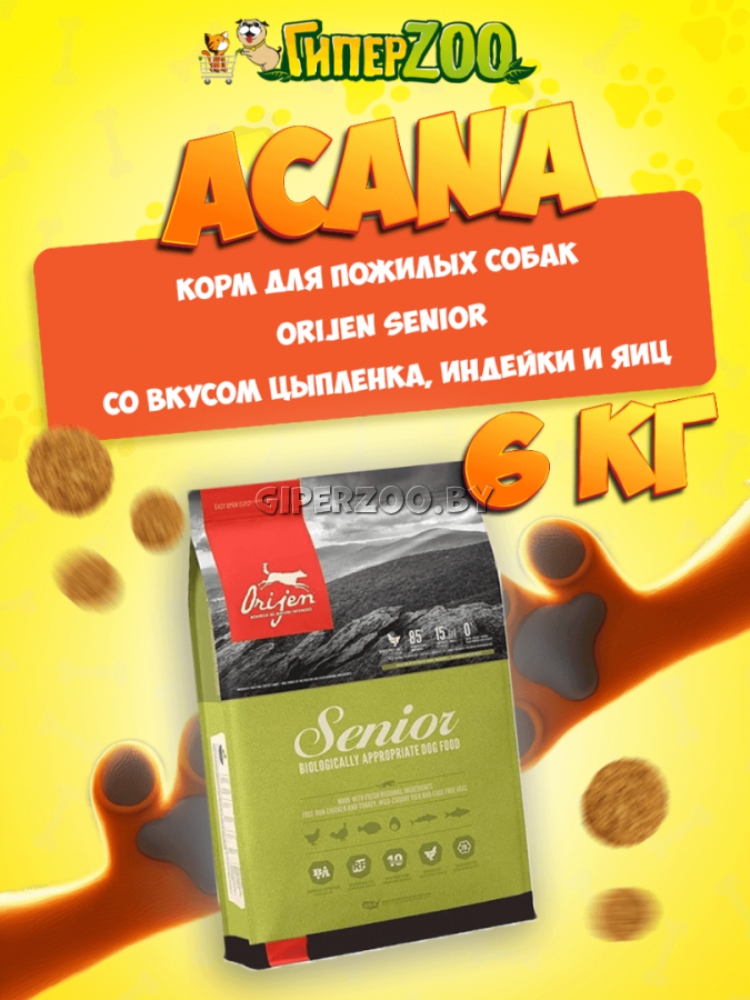 Сухой Корм Acana Orijen Senior (цыпленок, индейка, яйца), 6 кг