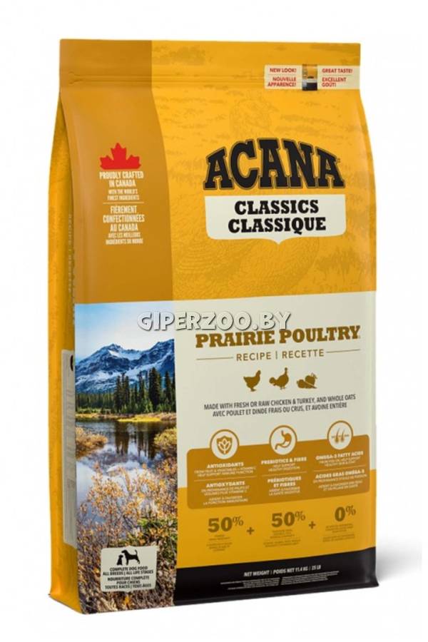 Разработанный в соответствии с природной потребностью животных, корм Acana Prairie Poultry, состоит из свежего мяса домашней птицы, выращенной канадскими фермерами и цельных яиц от несущихся в гнёздах кур.