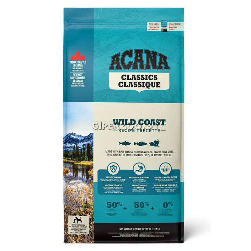 Рацион современных собак не только подобен рациону их предков, но и необходим им для отменного здоровья. Корм Acana Wild Coast содержит выловленную на воле у побережья острова Ванкувер рыбу, наполненную высокопитательными протеинами и Омега-3 жирными кислотами.