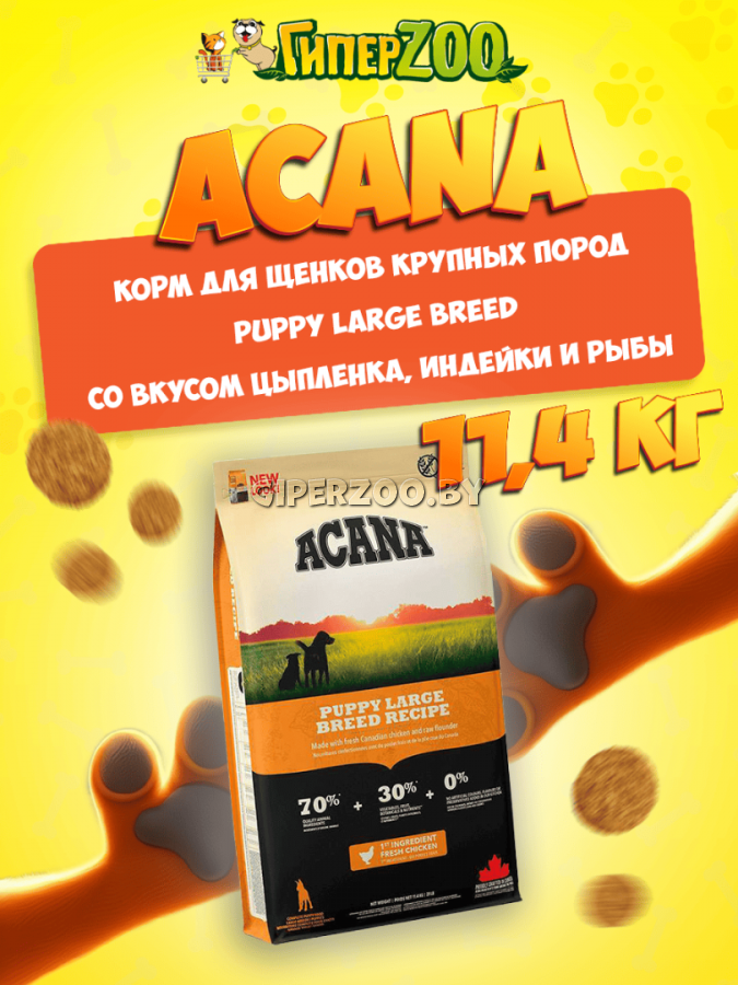 Сухой Корм Acana Puppy Large Breed (цыпленок, индейка, рыба), 11,4 кг