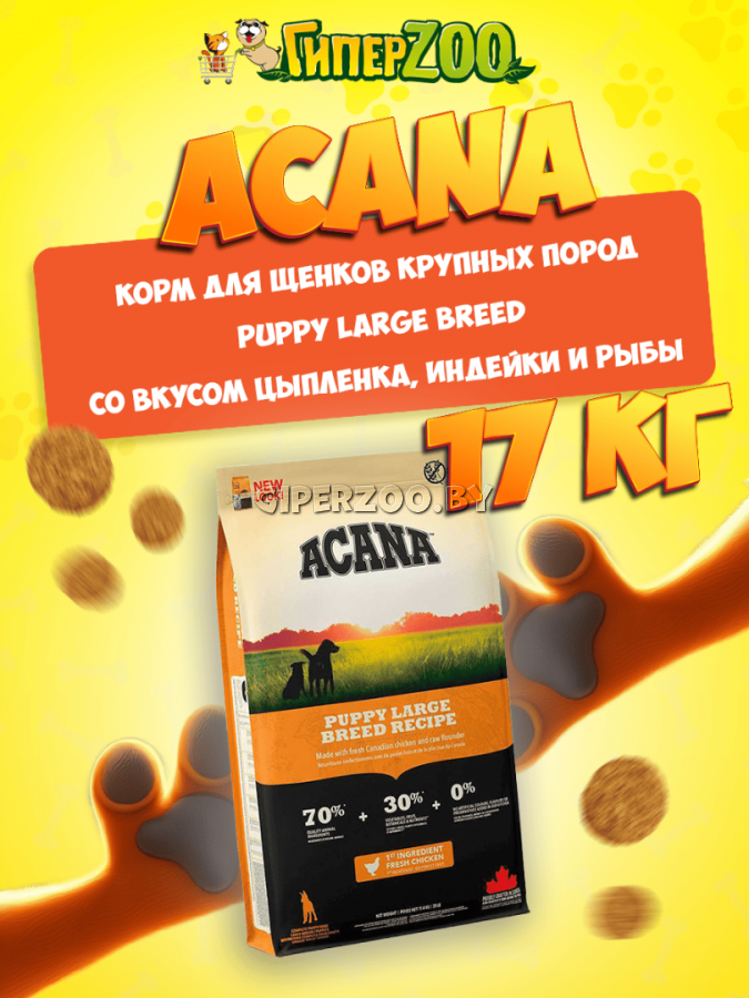 Сухой Корм Acana Puppy Large Breed (цыпленок, индейка, рыба), 17 кг