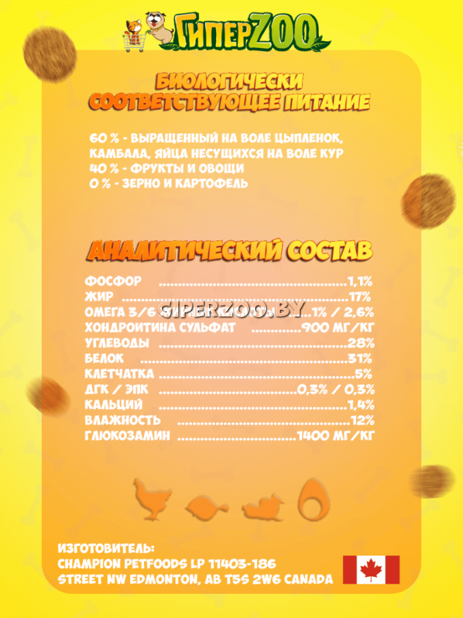 Философия биологического соответствия проста: воплотить в корме качество, свежесть и разнообразие мясных ингредиентов, к потреблению которых собаки приспособлены природой, и в то же время ограничить количество углеводов и синтетических добавок, которые не входят в их природную диету.