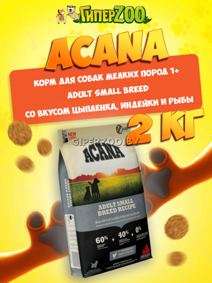 Сухой корм Acana Adult Small Breed (Акана Эдалт Смолл Брид с цыпленком, индейкой и рыбой), 2 кг - корм для взрослых собак мелких пород старше 1 года.