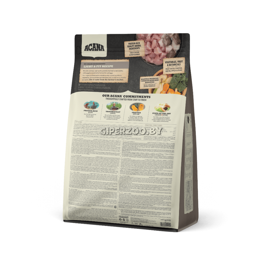 Вот почему ACANA Light & Fit состоит из мяса, выращенного на свободном выгуле цыпленка, индейки, яиц несущихся в гнездах кур и выловленной на воле камбалы. Ингредиенты доставляются свежими из нашего региона и сохраняют непревзойденную пользу и вкус.