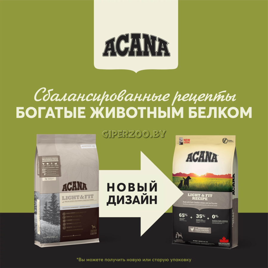 Сухой Корм Acana Light & Fit Dog (курица, индейка, рыба), 2 кг