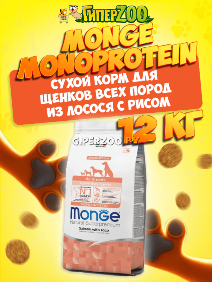 Monge Puppy&Junior All Breeds dog (лосось и рис), 12 кг - это полноценный сбалансированный рацион для щенков всех пород. Оптимален для собак, склонных к аллергическим воспалительным реакциям.