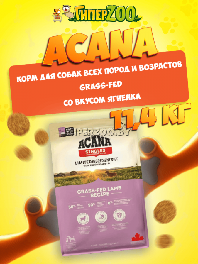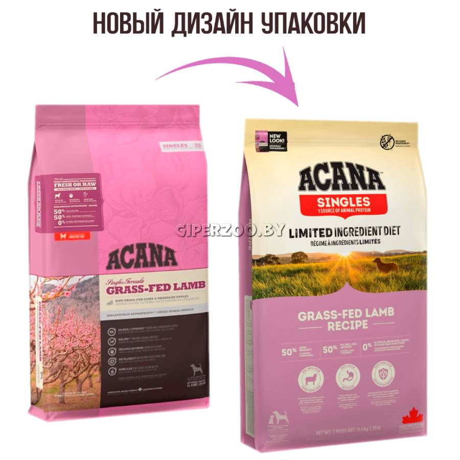 Сухой корм Acana Grass-Fed Lamb (Акана Грасс-Фед Ламб с ягненком), 11,4 кг - это беззерновой сбалансированный корм для взрослых собак и щенков. Биологически соответствующий гипоаллергенный сухой корм для собак с чувствительным пищеварением.